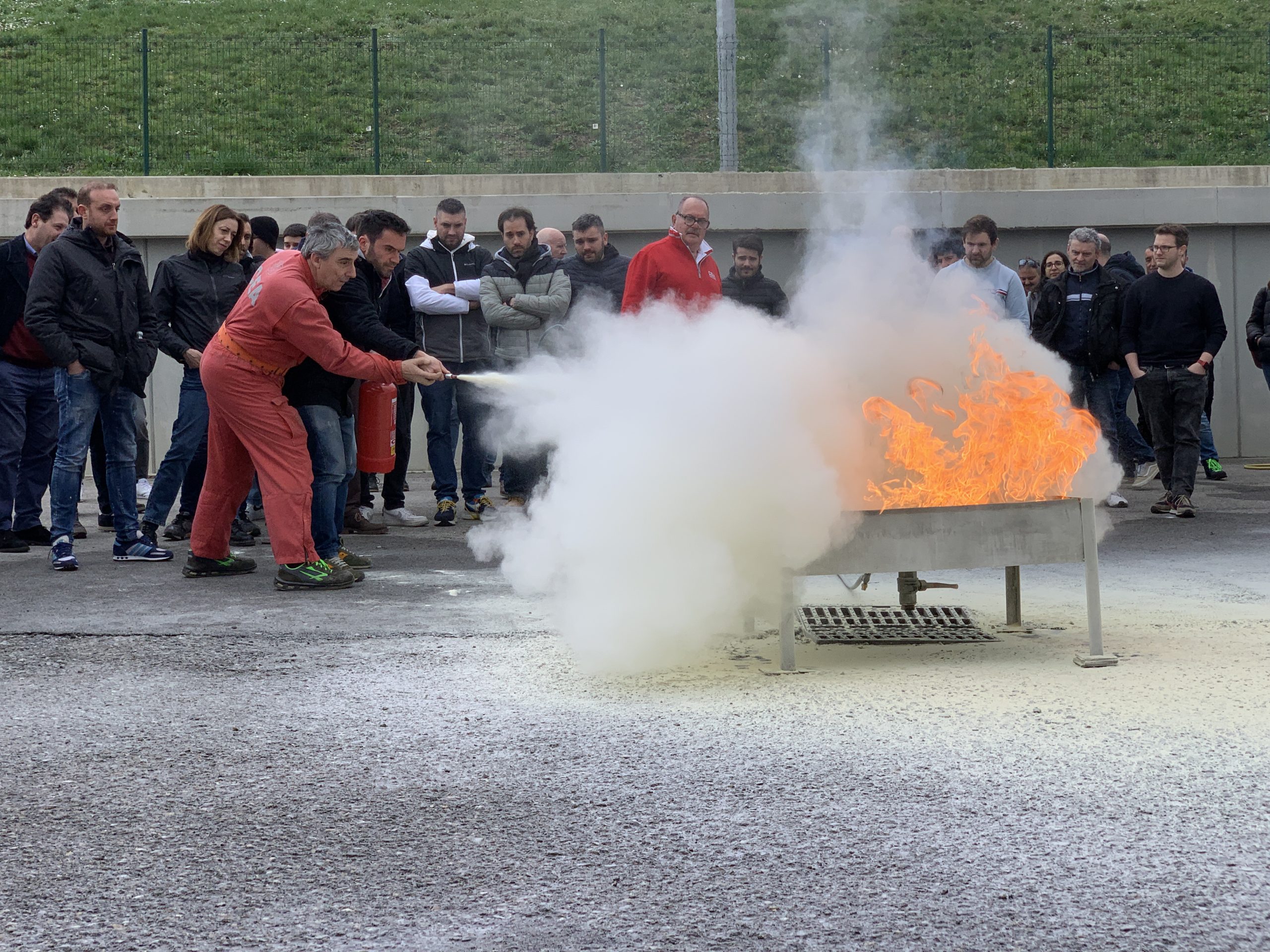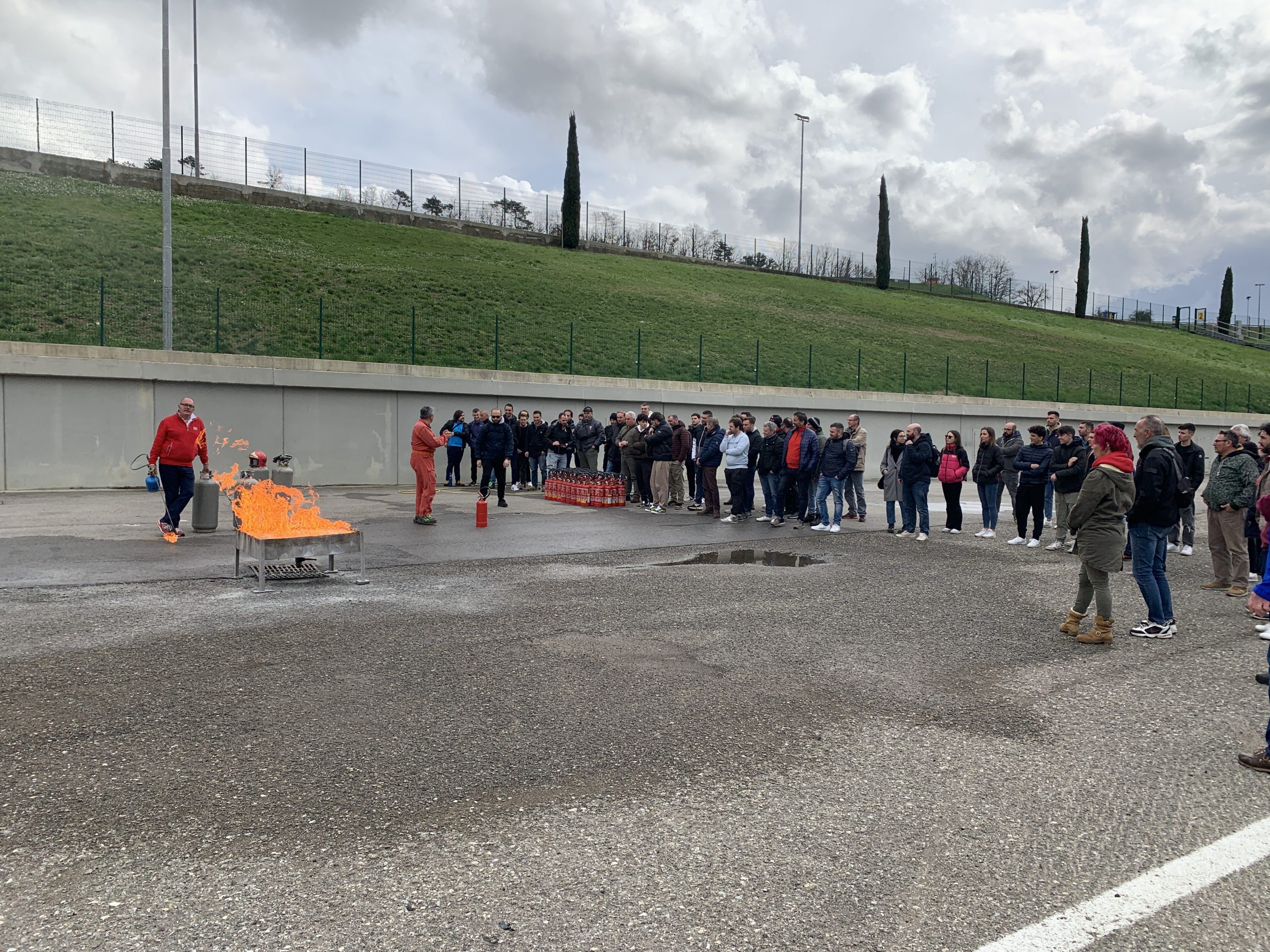 Nel pomeriggio la scena si è spostata nel paddock dell’autodromo dove è stata allestita una zona per simulare un incendio ed eseguire le prove pratiche di spegnimento.